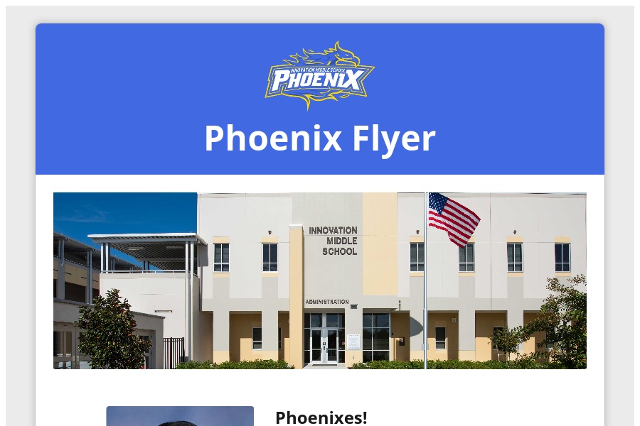 Join us on this incredible journey of discovery, growth, and achievement. Experience the spirit of excellence at Innovation Middle School, where we shape the leaders of the future. Witness firsthand how our students rise from the Phoenix Nest to reach extraordinary heights.